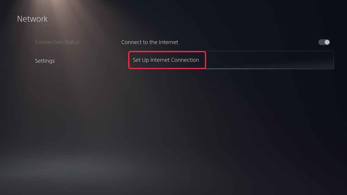 - On the Network page select Settings → Set Up Internet Connection.
