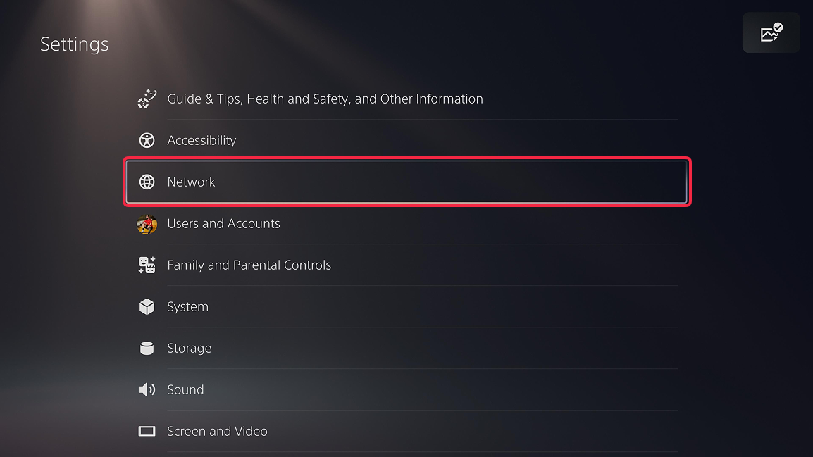 - On the Settings page select Network.