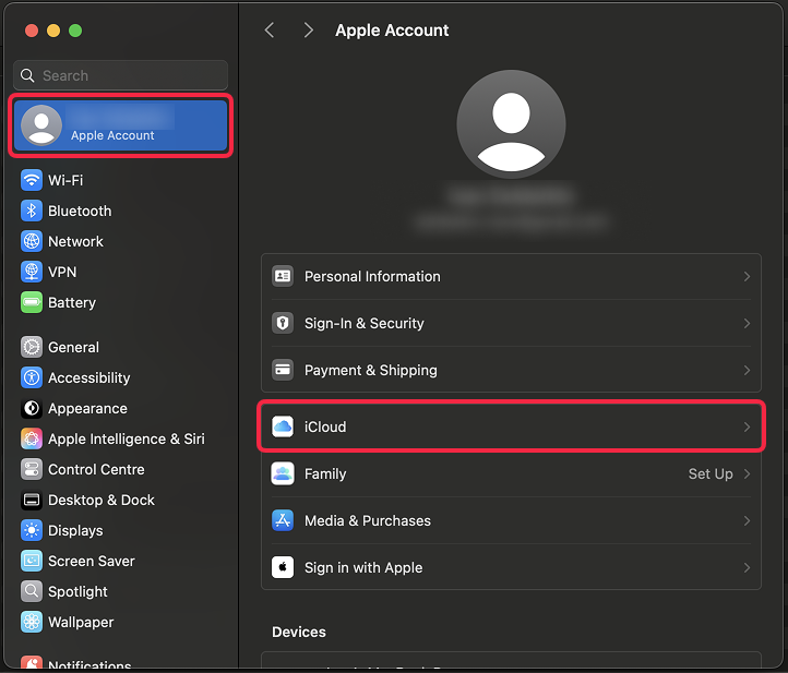 - Click your Apple ID name at the top of the sidebar.